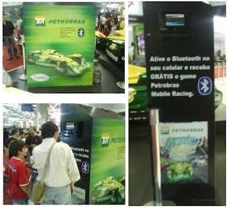 Desta vez no estande da Petrobrás enviando um game (olha aí Adolfo !) para os celulares. Trata-se do Petrobrás Mobile Racing, um jogo de corrida cujo personagem principal é o carro conceito chamado Green Energy.