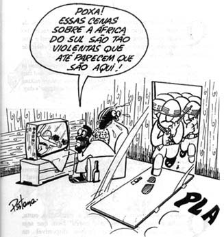 | Humor Negro Arnaldo Xavier e Maurício Pestana são artistas negros que resolveram usar toda sua criatividade para retratar, de forma bem humorada, uma realidade brasileira: a discriminação racial. Arnaldo Xavier, nascido em Campina Grande (Paraíba) em 1948, é autor de diversos livros que vai da literatura poética à peças teatrais; muitos destes trabalhos voltados para a cultura negra e a questão racial. Seus últimos trabalhos foram: Antologia da Nova Poesia Brasileira (1992) e Antologia da Poesia Negra Brasileira (1993). Maurício Pestana nasceu em Santo André(São Paulo) em 1963, desenvolvendo seu talento artístico através de trabalhos na imprensa, como chargista político do Diário do Grande ABC e em outros veículos de comunicação. Manual de sobrevivência do negro no Brasil é um livro bilingüe (português-inglês) composto de textos e charges, além de um glossário com as palavras "proibidas"- as palavras do racismo. Apesar de tratar de uma realidade perversa e triste, o livro é um trabalho bem humorado. Suas piadas (humor NEGRO) são recortes de situações do cotidiano do negro brasileiro e "estorinhas" da cultura popular, que acabam por revelar a hipocrisia da sociedade brasileira.